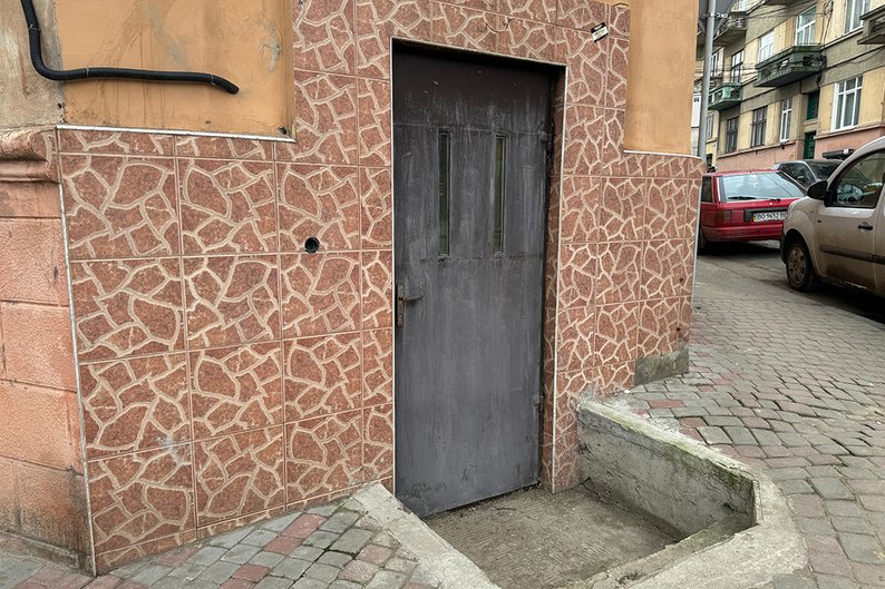 Самовільно облаштований вхід у підвальне приміщення в будинку на вулиці Переяславській, 34. Суспільне Чернівці