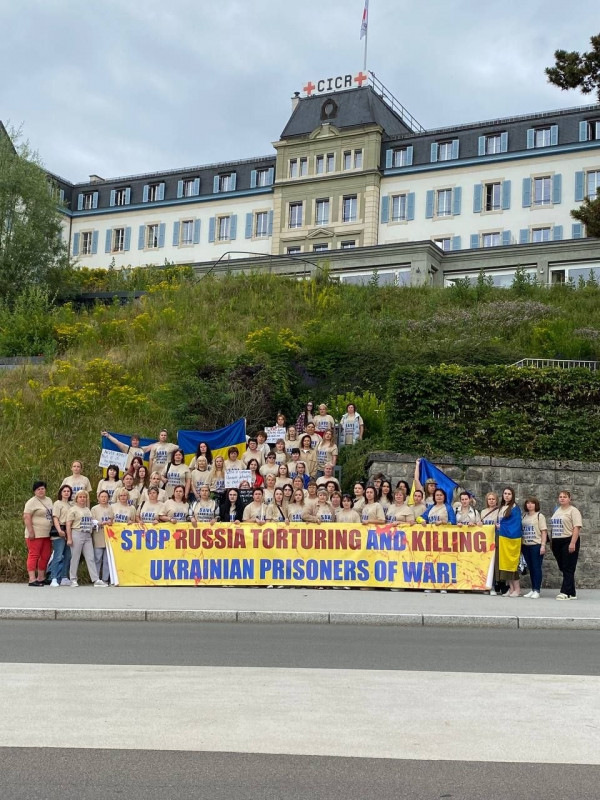 Родичі та близькі українських полонених поблизу Міжнародного Комітету Червоного Хреста у Швейцарії. Фото: Катерина Назарій