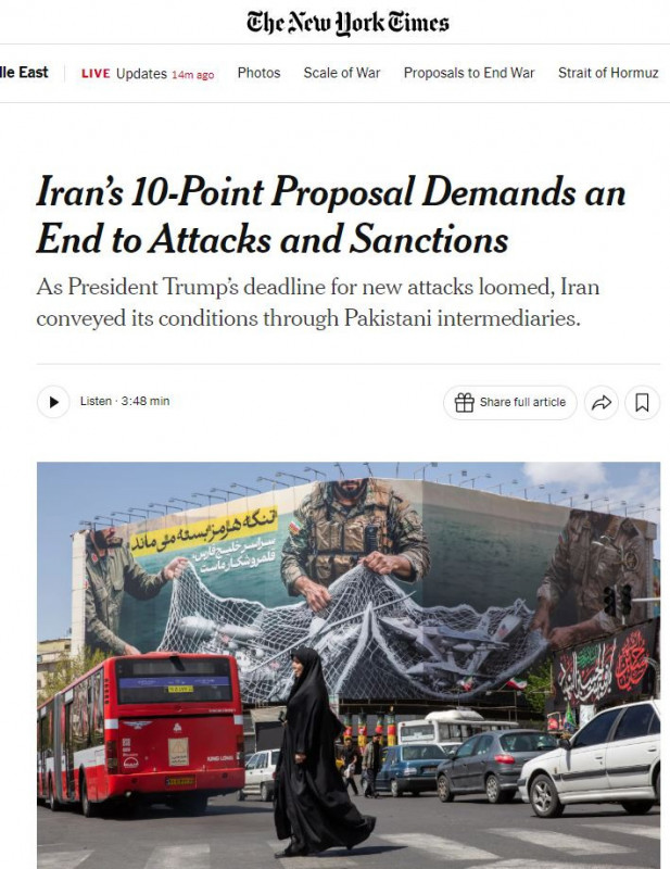 Представники Ірану передали свою 10-пунктну пропозицію щодо завершення конфлікту зі США та Ізраїлем.