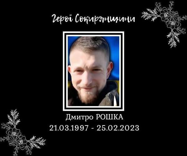 Вічна і світла пам'ять Захиснику України Дмитру Рошці!