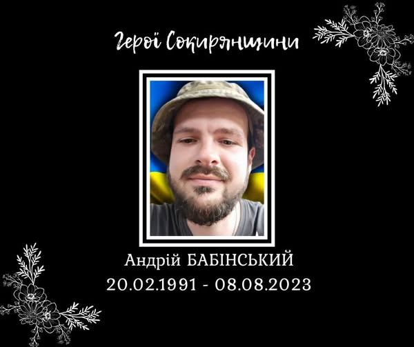Вічна пам'ять, слава і шана Захиснику України Андрію Бабінському!