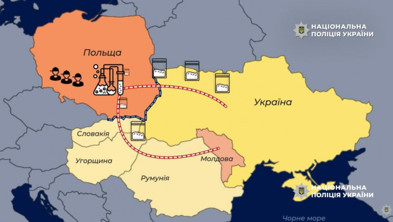 На території Польщі затримано 6 осіб, причетних до роботи лабораторій. У Молдові − кур’єра, який намагався перевезти через кордон наркотики українського виробництва.