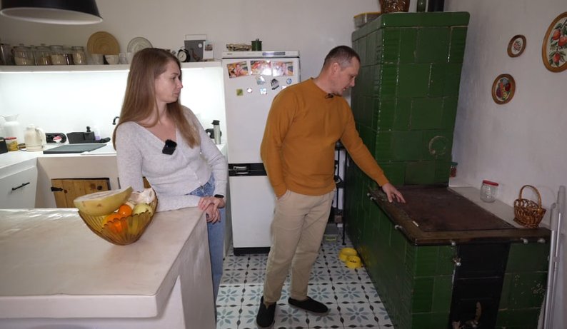 Родина любить проводити час на кухні. У їхньому будинку немає газопостачання, тому їжу під час відключень світла готували на пічці. Зараз пічку використовують лише для обігріву. Також для опалення мають камін.