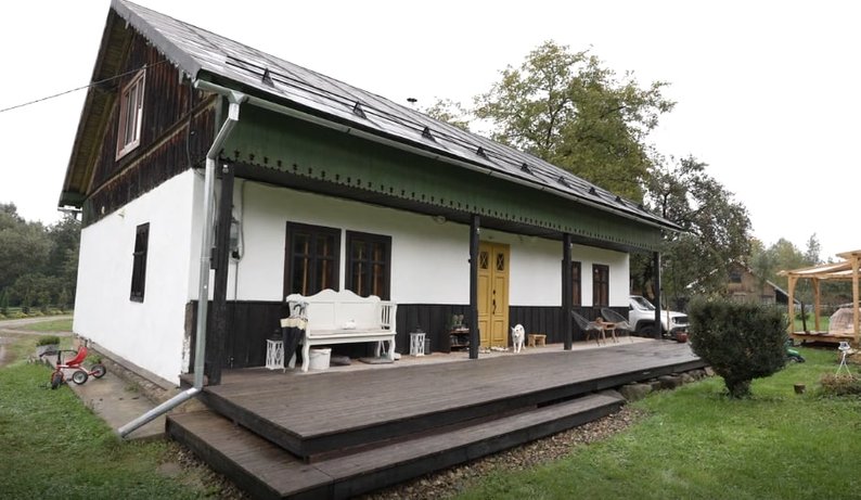 Попри те, що будинок був у поганому стані, подружжя повністю відремонтувало перший поверх, використовуючи природні матеріали. А на горищі облаштували другий поверх з кімнатами. Частину ремонту родина робила власними силами, для ще частини – залучали майстрів.