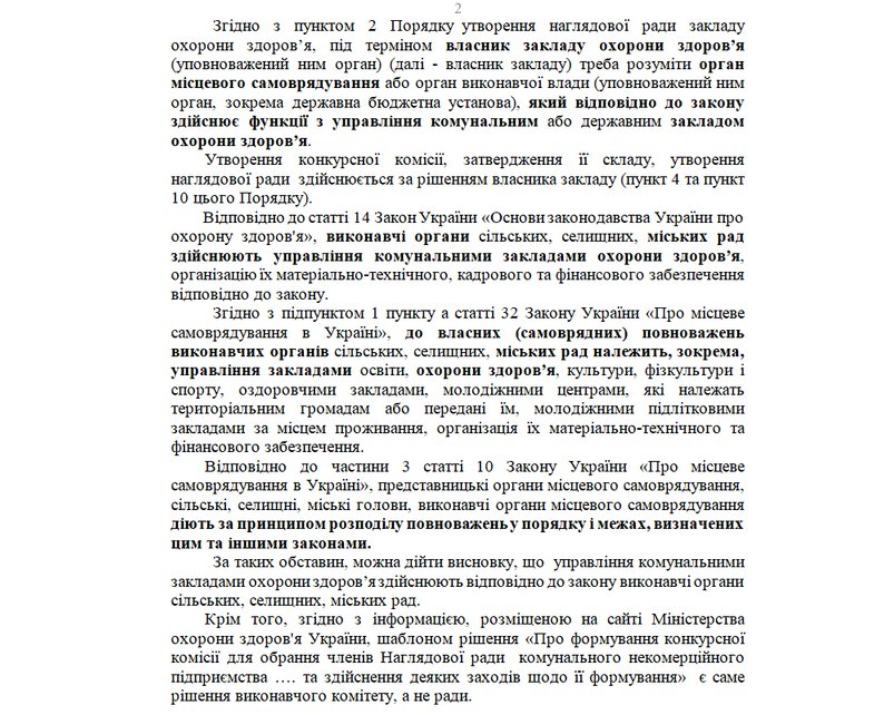 "Зупинення цього рішення — спроба блокування виконання державної політики в галузі охорони здоров’я, яка є частиною медреформи. […] Відкликання рішення — маніпуляція та пряма загроза для прозорості управління, ефективного використання коштів НСЗУ та довіри пацієнтів до закладу", – розповідала керівниця проєкту з впровадження наглядових рад при медзакладах України Ірина Рачинська.