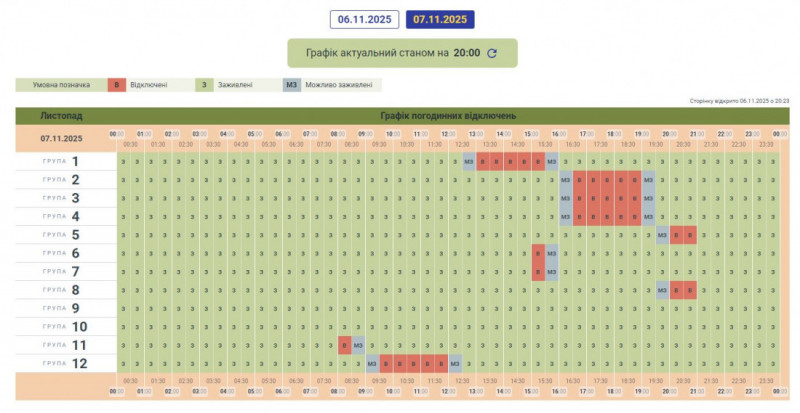 По всій території України у пʼятницю, 7 листопада, всю добу будуть задіяні погодинні відключення електроенергії, повідомляє Міненерго.