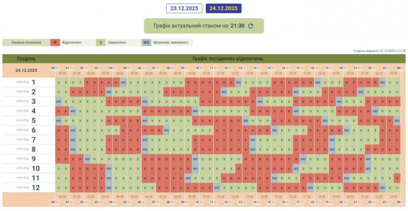 Графік може змінюватися залежно від оперативної ситуації в енергосистемі країни.