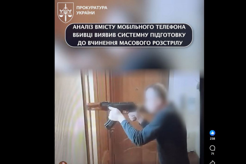 Аналіз вмісту мобільного телефону вбивці засвідчив системну підготовку до вчинення масового розстрілу. На виявлених відеозаписах зафіксовано, як він удома відпрацьовував навички швидкого приведення зброї в бойову готовність та прицільної стрільби.