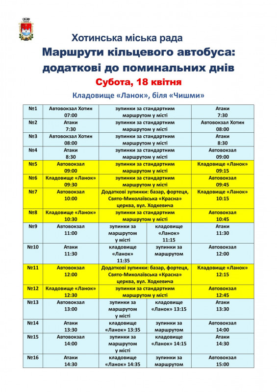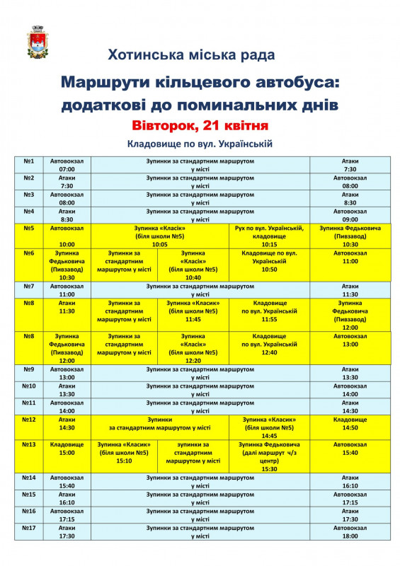 У поминальні дні в місті Хотин Чернівецької області запустили додаткові маршрути безплатного муніципального автобуса. Йдеться про 16, 18 та 21 квітня.