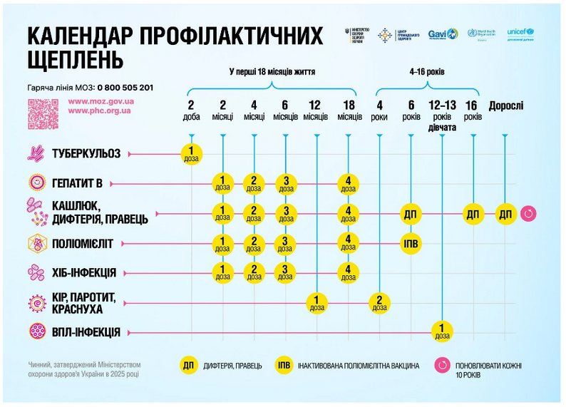 Національний календар профілактичних щеплень. Міністерство охорони здоров’я України
