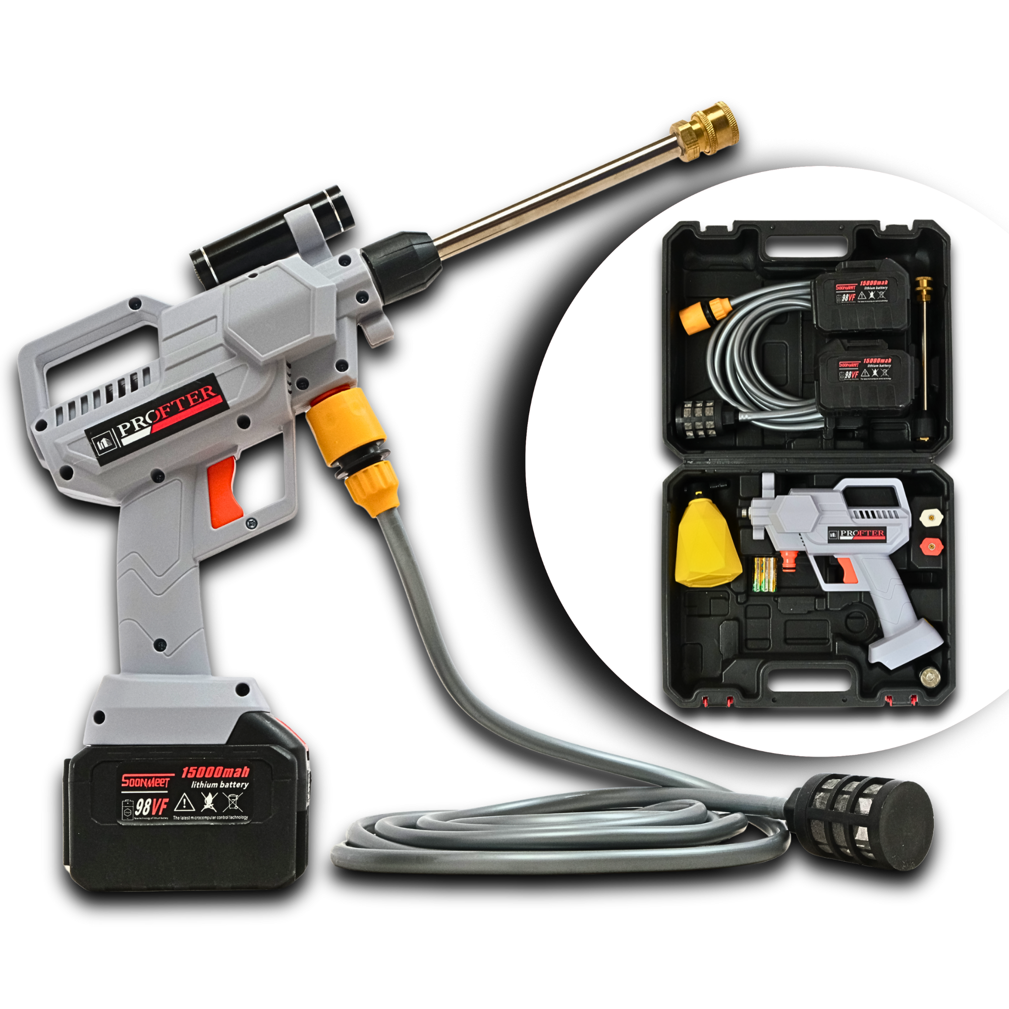 Минулого літа значно зріс попит на акумуляторні ручні мийки високого тиску: їх використовують автомийки, монтажні бригади, майстри, які обслуговують техніку на виїзді. Наприклад, модель Profter SW-98 White має тиск до 25–30 бар і витрату 8 л/хв — цього вистачає, щоб змити бруд з кузова, інструментів або плитки без підключення до мережі. Мийку можна під’єднати до будь-якої місткості з водою — навіть звичайної каністри.