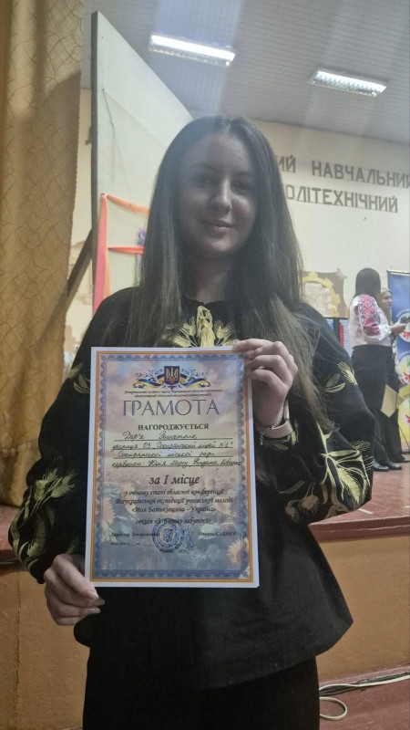 - Анна Кравченко, учениця опорного закладу «Романковецький ліцей ім. К. Ф. Поповича», 2 місце в очному епаті. Керівник: Лариса Заяц.