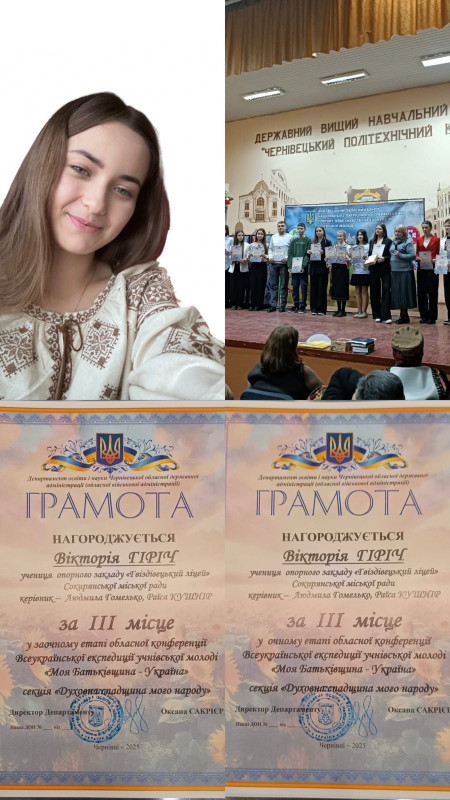 - Вікторія Гіріч, учениця опорного закладу «Гвіздівецький ліцей», 3 місце в очному і заочному етапі. Керівники: Людмила Гомелько, Раїса Кушнір.