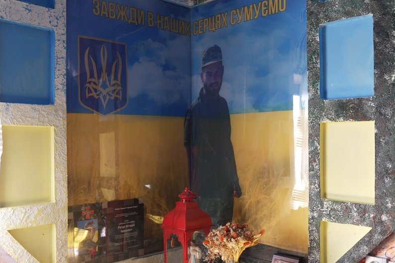 Місце, присвячене загиблому вдома військовому Віталію Рачуку. Суспільне Чернівці