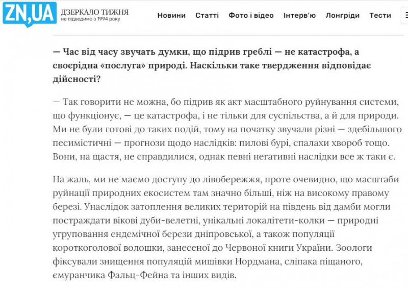 “Постає питання не лише економічної доцільності, а й моральності та законності можливого рішення про знищення найбільшого за площею заплавного лісового біотопу в разі відбудови Каховського водосховища в майбутньому. Звісно, ми не заперечуємо можливості відбудови водосховища, але в розумних об’ємах для забезпечення зрошення, потреб Запорізької АЕС і судноплавства.