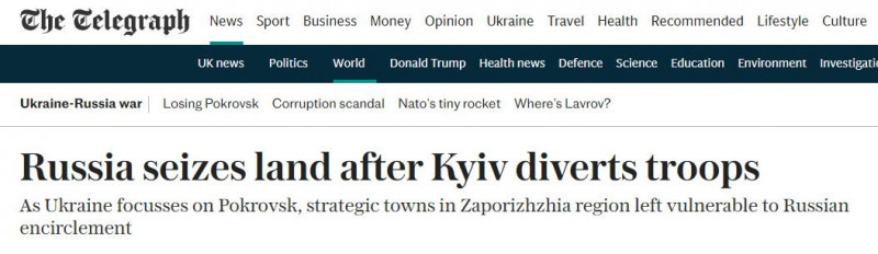 Як пише The Telegraph, Росія більш тихо завойовує території на стику Донецької, Запорізької та Дніпропетровської областей, де оборона була відносно не пріоритетною.