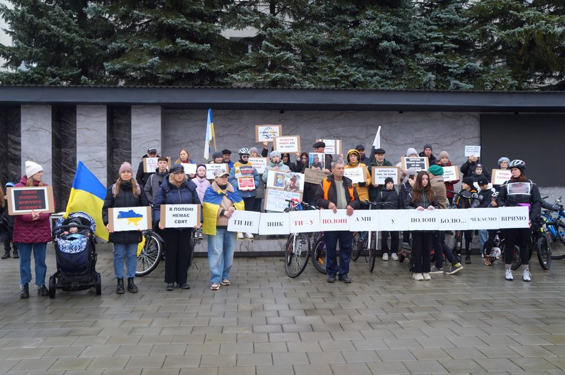 "Ми кажемо, що у полоні немає хорошої погоди. Якщо буде дощ або погана погода, то не їдемо велосипедами, але все одно стоїмо на площі. Акції проводимо щомісяця", — розповідає Тетяна.