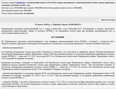У рішенні апеляційного суду, яке Суспільному надавав Сергій Булега, йдеться, що суд задовільнив вимоги Булеги повністю. Зокрема, скасував рішення Чернівецького окружного адміністративного суду, визнав протиправним та скасував рішення 39 сесії Кіцманської міської ради VIII скликання від 7 січня 2025 року “Про висловлення недовіри та дострокове припинення повноважень міського голови Булеги Сергія Борисовича”.