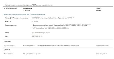 Скриншот з єдиного реєстру виконавчих проваджень. Автоматизована система виконавчого провадження