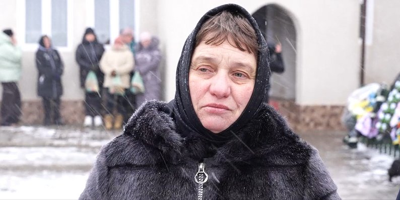 Катерина з сином на похороні чоловіка Сергія Тягія у Коболчині. Суспільне Чернівці