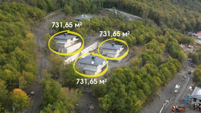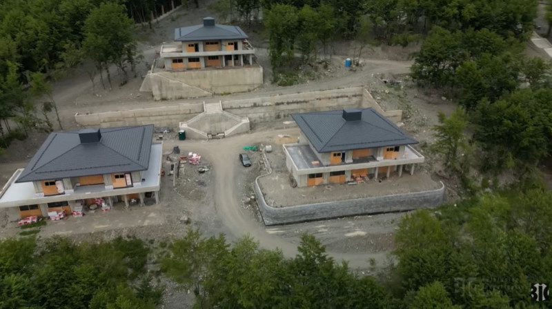 Автори розслідування відвідували об’єкт у липні та жовтні цьогоріч. За їх словами, на території тривають роботи з прокладання комунікацій, укріплення схилів, встановлення споруд для персоналу та огорожі. Три котеджі майже добудовані, найбільший, четвертий, має частину вікон та каркас покрівлі. Будівництво планують завершити до кінця 2025 року, йдеться у розслідуванні.