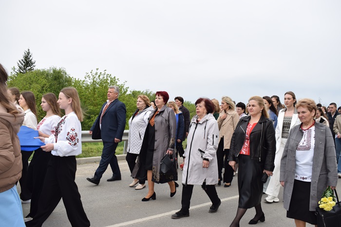 Учасники маршу вишиванок зробили зупинку біля Сокирянського ліцею, де навчався Андрій Бабінський: вклонилися його пам’яті, поклали квіти та згадали, що за кожним ім’ям Героя – життя, родина, мрії. І що Герої живі, поки ми про них пам’ятаємо.