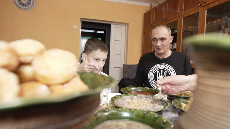 Михайло Турецький з сином під час святкування Святвечора. Суспільне Чернівці