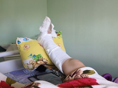 Травма ноги, яку отримала Ксенія, після того як на неї впало дерево у Новоселиці. Суспільне Чернівці