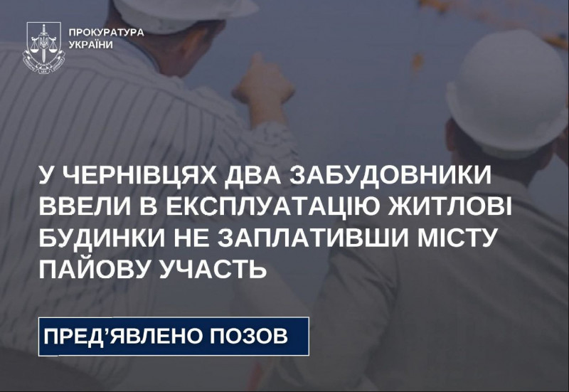 Окружна прокуратура міста Чернівці звернулася до суду з позовами про стягнення з двох будівельних компаній понад 3 млн грн пайової участі.