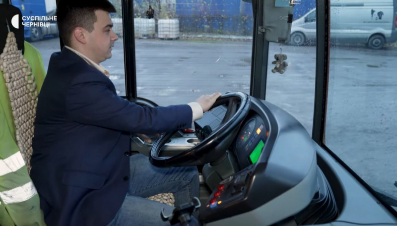 Максим Марчук, який працює вчителем трудового навчання та водієм автобусного маршруту №9 у Чернівцях. Суспільне Чернівці