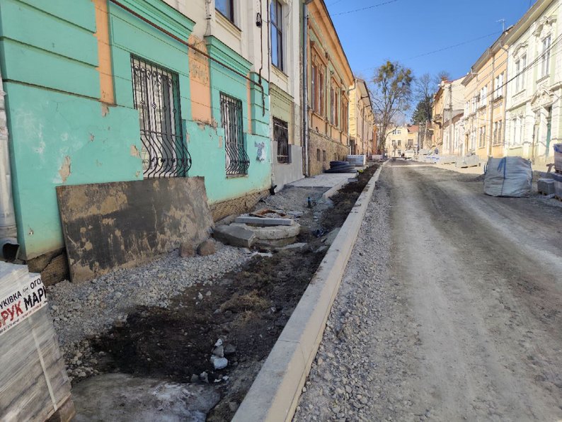 Вулиця Фучика у Чернівцях, яку капітально ремонтують. 11 березня 2026 року. Суспільне Чернівці/Роман Пилатик