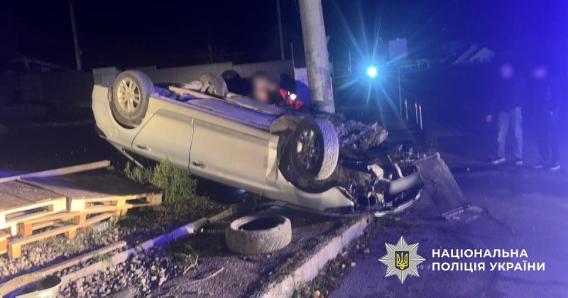 За попередньою інформацією правоохоронців, 17-річний житель обласного центру, керуючи автомобілем «Hyundai Sonata», допустив зіткнення з бетонною спорудою, після чого транспортний засіб перекинувся.