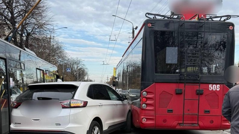 У Чернівцях через аварію на вулиці Руській, 270 ускладнений проїзд. ДТП сталася внаслідок зіткнення авто з тролейбусом.