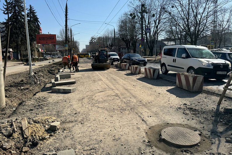 Вулиця Заньковецької у Чернівцях, яку капітально ремонтують. 12 березня 2026 року. Суспільне Чернівці