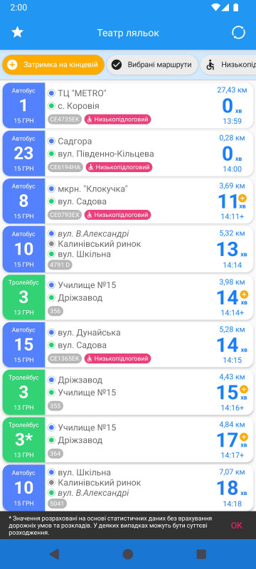 Додаток автоматично відфільтровує застарілу інформацію та не відображає транспорт, який тривалий час не передає інформацію про своє місцезнаходження.