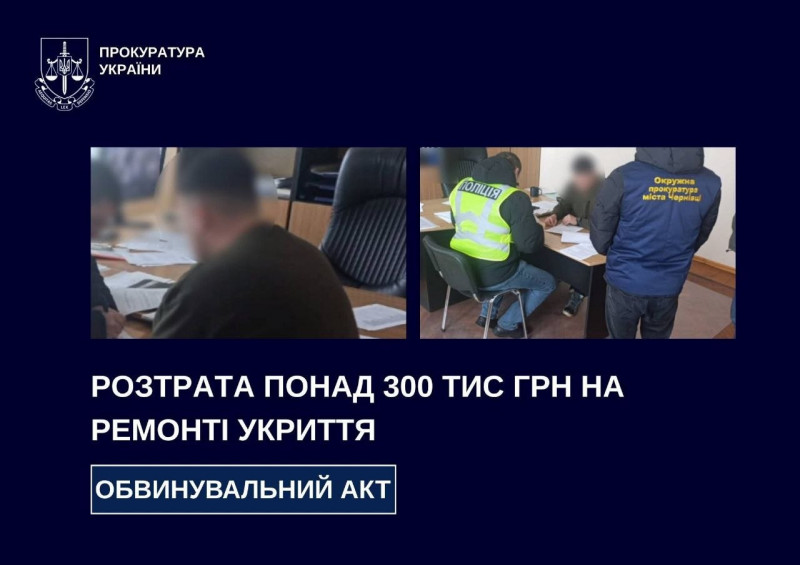 Ювенальні прокурори Окружної прокуратури Чернівців передали до суду обвинувальний акт стосовно директора департаменту міськради та його колишнього заступника за фактом розтрати понад 300 тис. грн бюджетних коштів, виділених на ремонт укриття одного з міських ліцеїв (ч. 4 ст. 191 КК України), повідомляє Чернівецька обласна прокуратура.