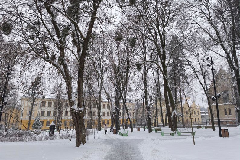 Засніжений сквер Кордуби у Чернівцях . Суспільне Чернівці