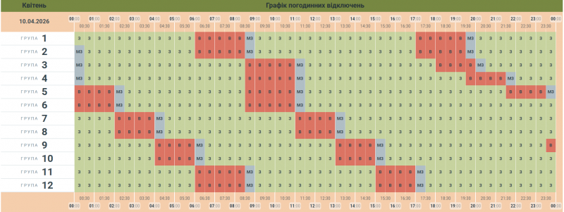 Графік погодинних відключень електрики на 10 квітня. АТ “Чернівціобленерго”