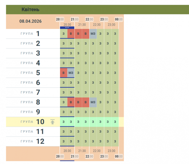 Графік відключення світла на 8 квітня 2026 року у Чернівцях. АТ “Чернівціобленерго”
