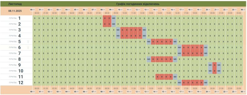 Графік погодинних відключень електрики на 8 листопада. АТ “Чернівціобленерго”