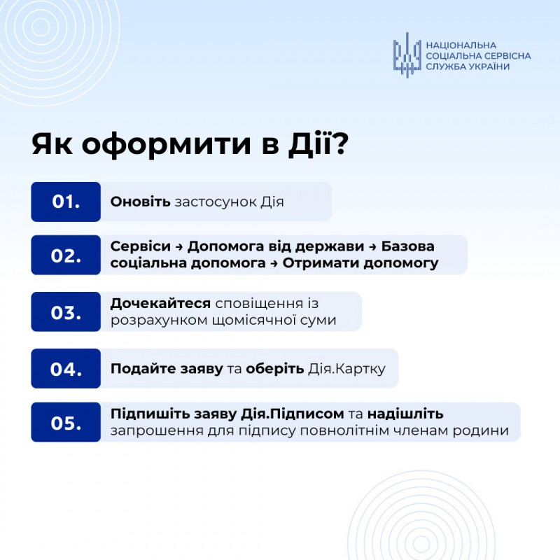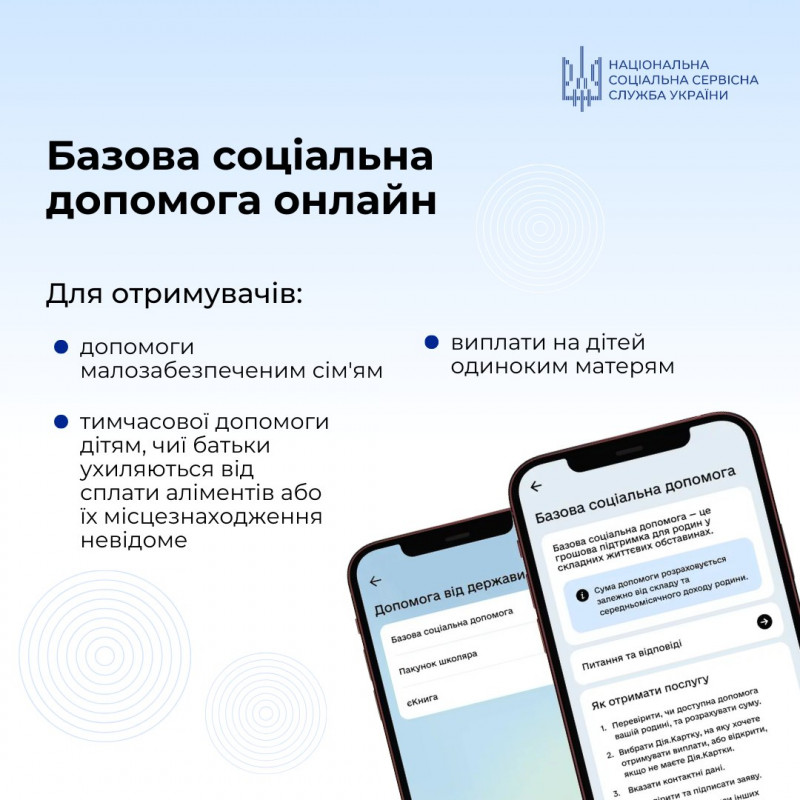 Сервіс дає змогу подати заявку особам, які є отримувачами однієї або кількох видів підтримки, зокрема малозабезпеченим сім'ям, виплат на дітей одиноким матерям, тимчасової допомоги дітям, чиї батьки ухиляються від сплати аліментів або місцезнаходження яких невідоме.