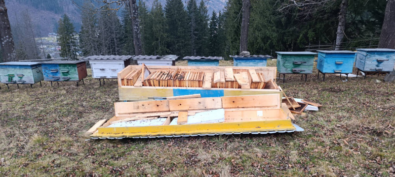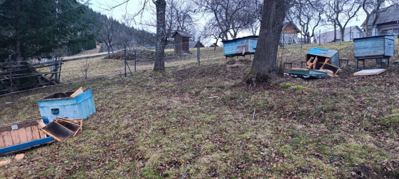 Любов Кермач опублікувала світлини з наслідками “візиту” ведмедя та заначила, що за минулий тиждень було завдано серйозної шкоди на пасіці хутора Самбори, а також, у сусідніх господарів.