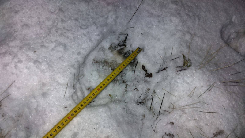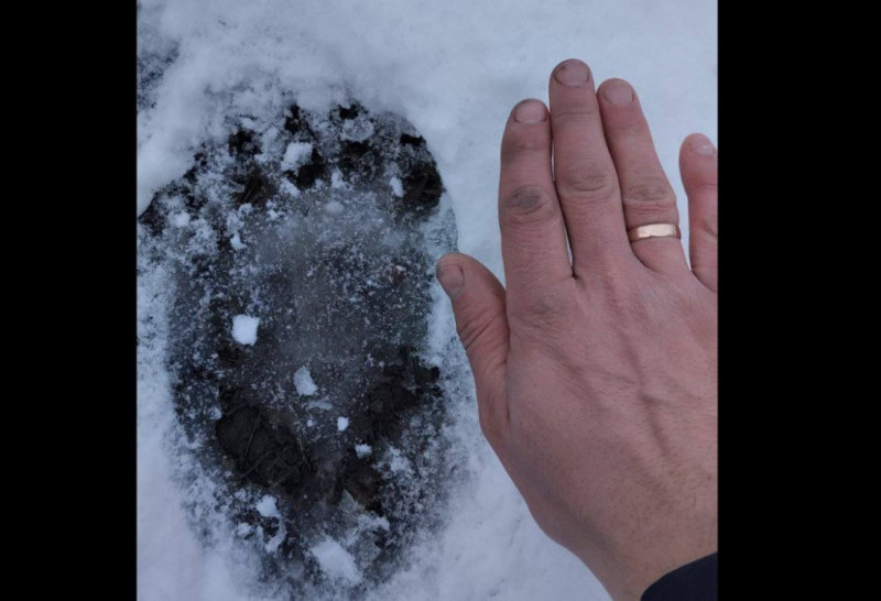 Любов Кермач на фото та відео показала сліди ведмедя, які відбилися на снігу, який випав минулої ночі в горах.