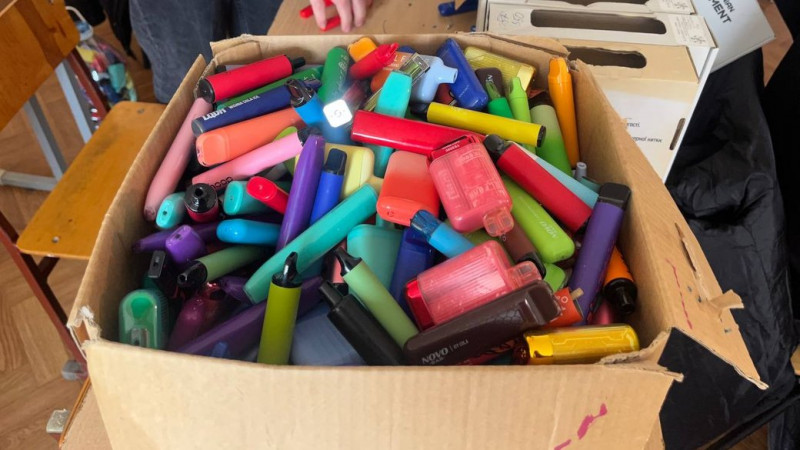 Коробка з використаними електронними сигаретами. Фото: Суспільне Чернівці