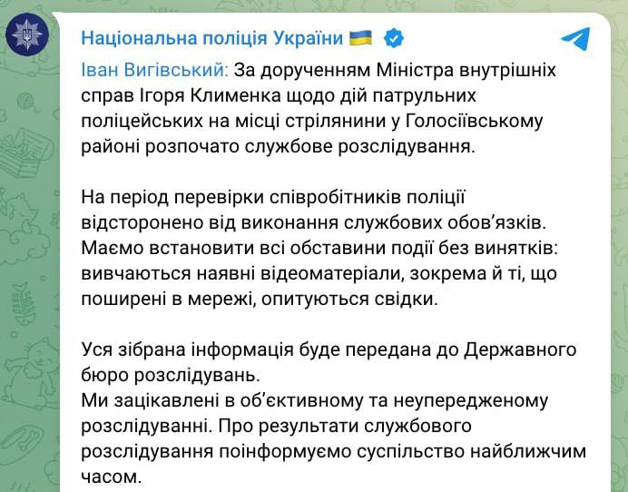 “Служити та захищати – це не просто гасло. Він має бути підкріплений відповідними професійними діями. Особливо в критичні моменти, коли від цього залежать життя людей”, – заявив Клименко. Він пообіцяв оприлюднити результати внутрішнього розслідування.