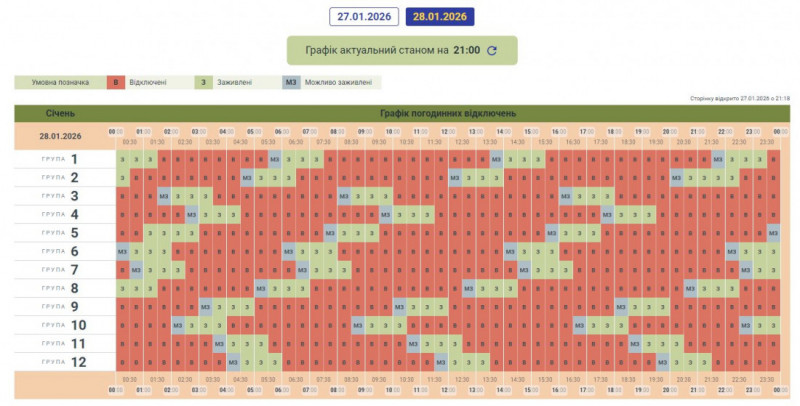 Графік може змінюватися залежно від оперативної ситуації в енергосистемі країни.