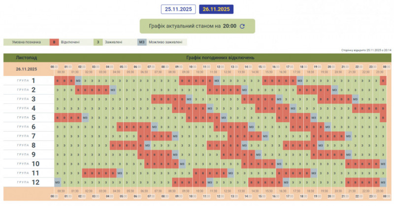 Графік може змінюватися залежно від оперативної ситуації в енергосистемі країни.