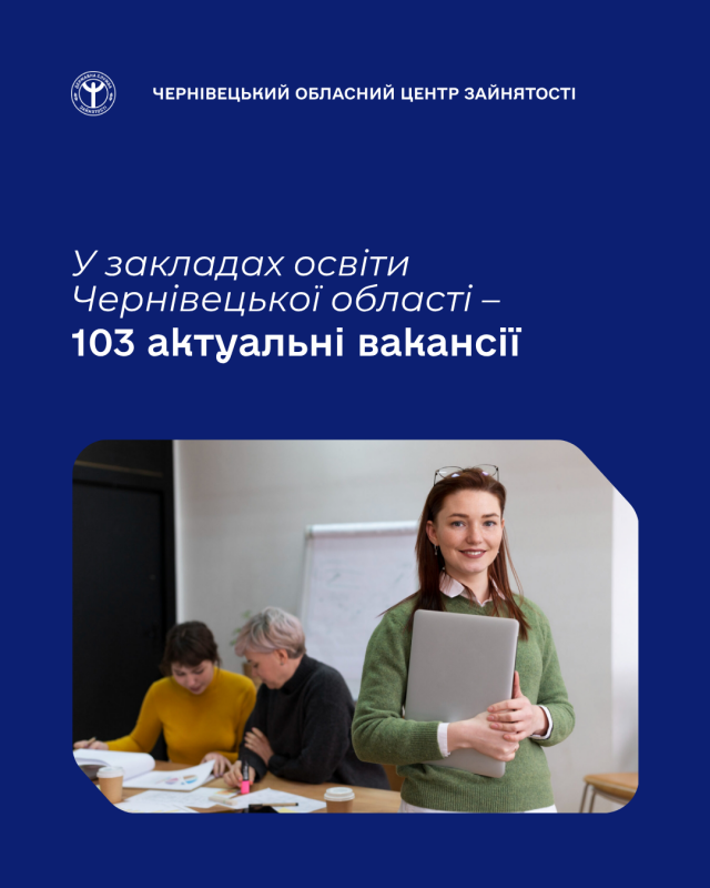 У базі вакансій Чернівецької обласної служби зайнятості зареєстровано 103 вакансії у сфері освіти.