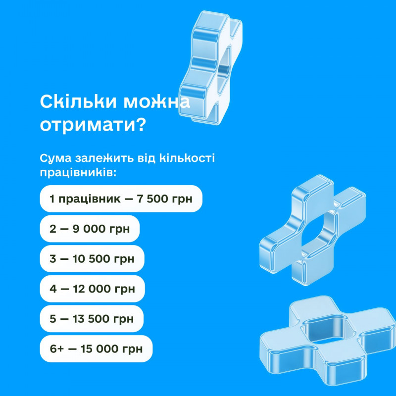 Подати заяву можуть фізичні особи-підприємці 2 або 3 групи спрощеної системи оподаткування, зареєстровані не пізніше 1 грудня 2025 року, які мають щонайменше одного найманого працівника, не мають заборгованості зі сплати єдиного соціального внеску та працюють у соціально важливих сферах.