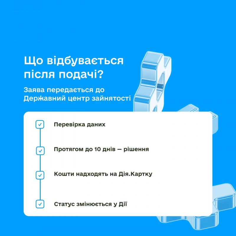 Після перевірки, що триває до десяти днів, заявник отримає сповіщення у застосунку, а кошти буде зараховано на Дія.Картку. Відкрити її можна у ПриватБанку, Монобанку, А-Банку, Банку Кредит Дніпро або Sense Bank.